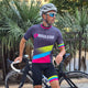 Directional stretch Air-Cool fabric combined with a body contour pattern promotes movement, efficient air-flow and maximum comfort. Perfect for rides in all conditions. 110 gsm fabric side panels provide maximum ventilation. Silicon injected power band at cuffs and waist improve aerodynamics and muscle support. 3 Rear pockets adorned with the cyclists.com logo.